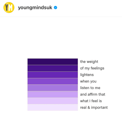 I watched a child that I have recently supported who is going through a really tough time, talking to his teacher. He gave her a hug and thanked her. When she asked him what it was for, he said, “For listening to me.” It reminded me of this that I saw today on X from Young Minds UK.